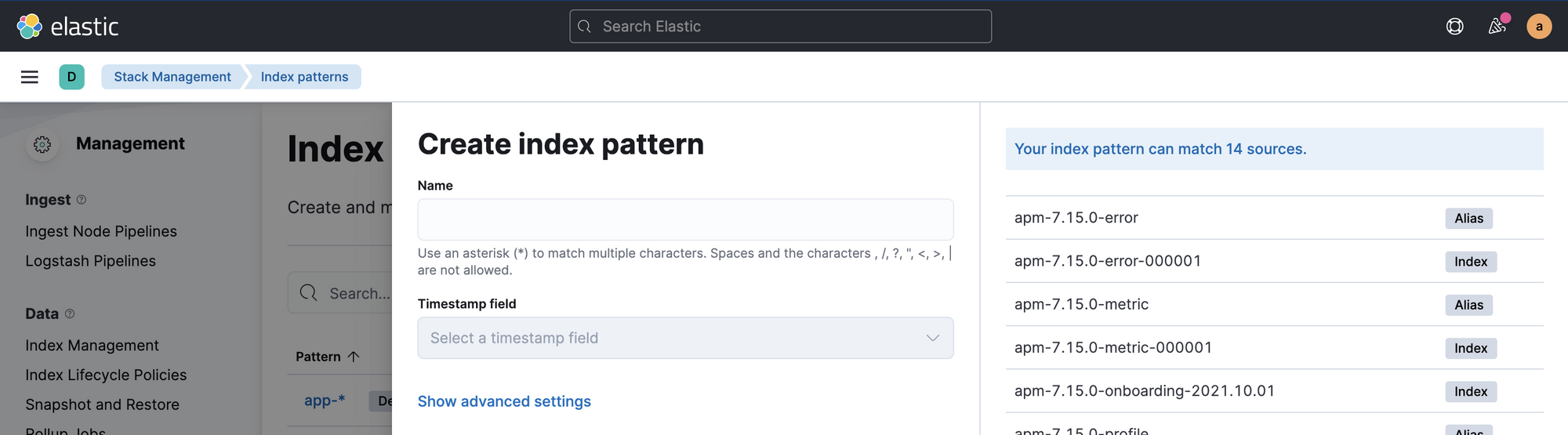 Namefield, enterapplog-*and you'll see the newly created index for your logs. Select@timestampforTimestamp fieldand clickCreate index pattern. - Now go to