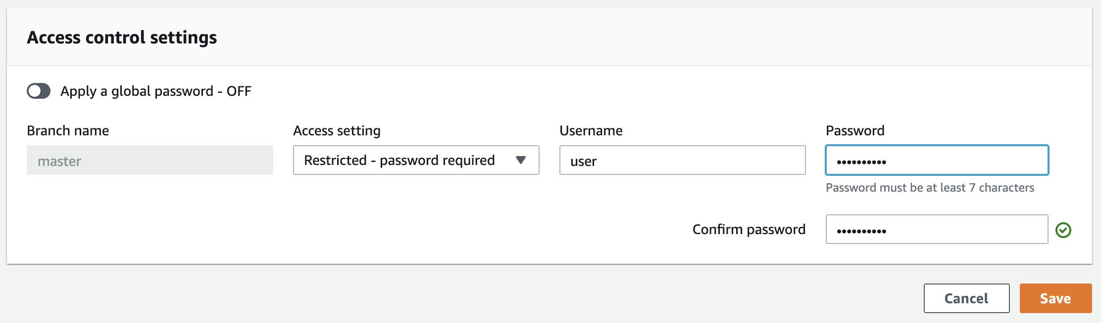 Change the Access settings and enter the Username and Password