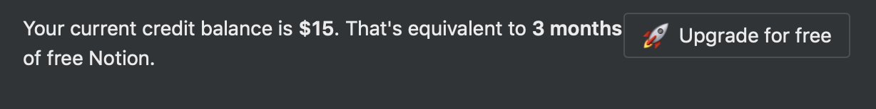 What does a $15 credit means for the users is clearly written in simple text form “That’s equivalent to 3 months of free Notion”. Example of Good UX copywriting.
