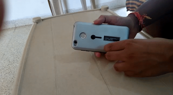 This is my phone cover and there is black strip which you can take out by moving the black button towards down. It’s follow the material design like switch which makes it unstable on the table when placed with the backside.