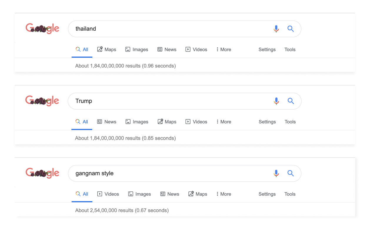 Google has perfectly designed their search engine, It always gives your the best result for your queries. Below we can see how the tabs are designed to arrange in different orders based on the queries, like for a place query, we have the “Maps” as the second tabs and for the gangnam style, we have the “Videos” as the second tab, and same for the Trump query, we get the “News” as the second tab.