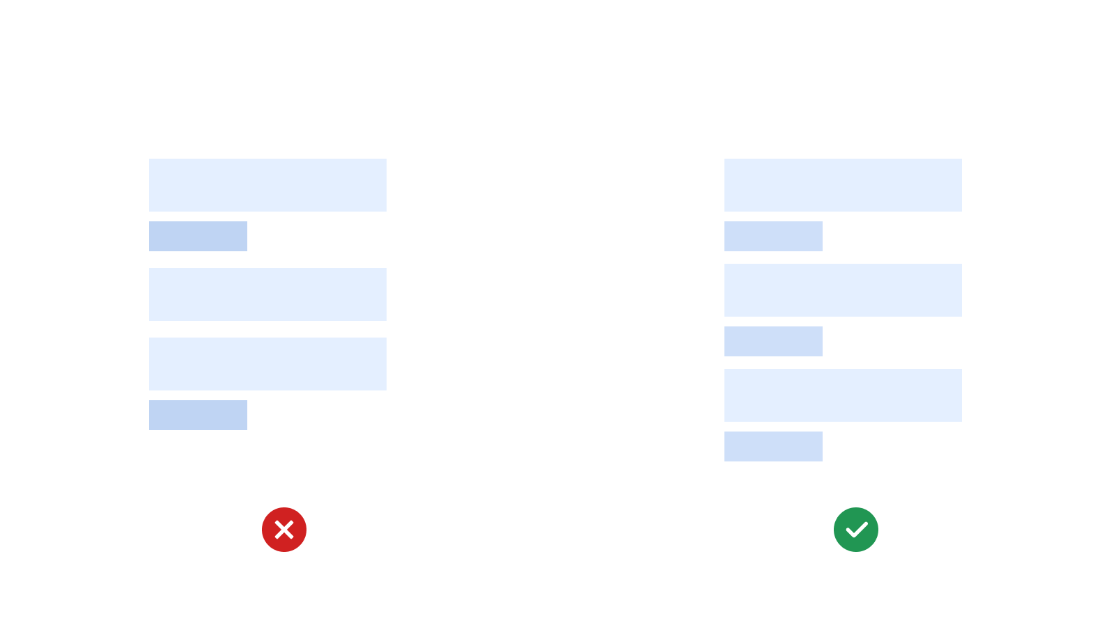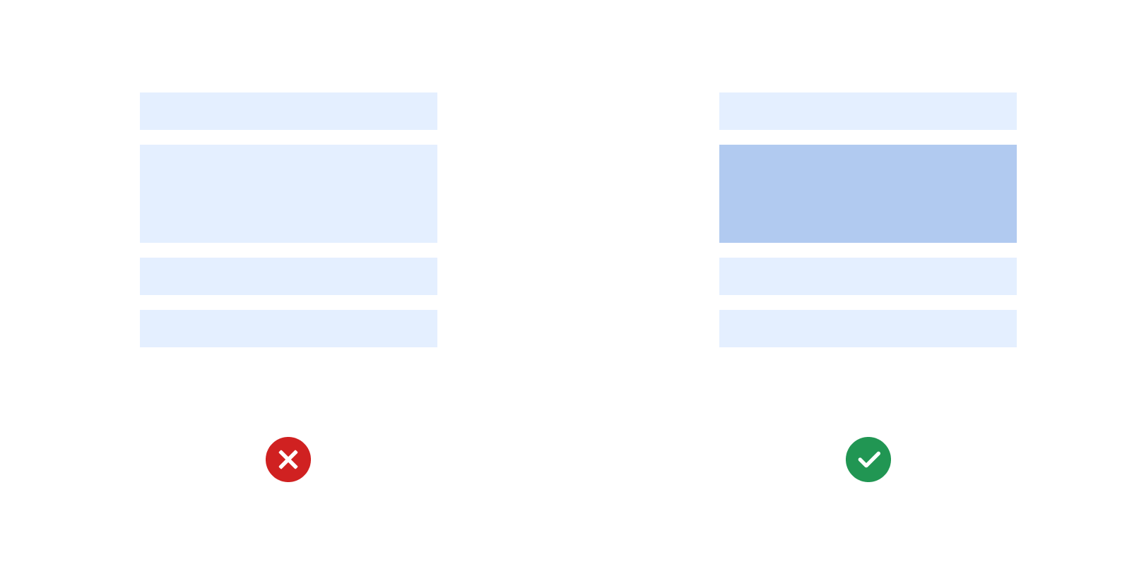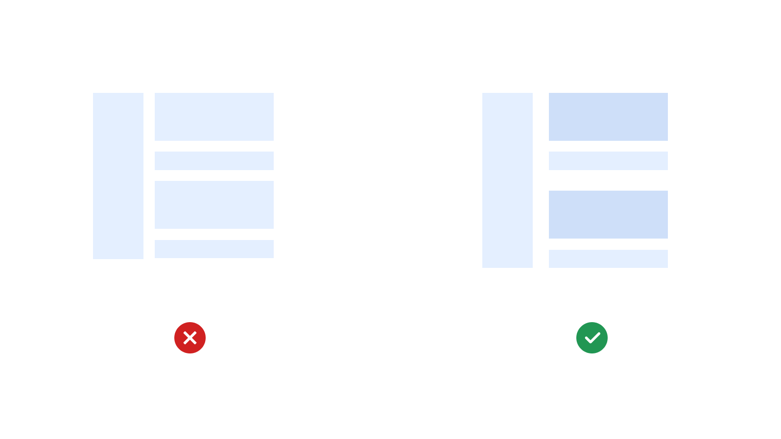 Using the consistent alignment throughout the product UI can speed up the scanning and readability of the users. - Set styles for visually differentiating content.