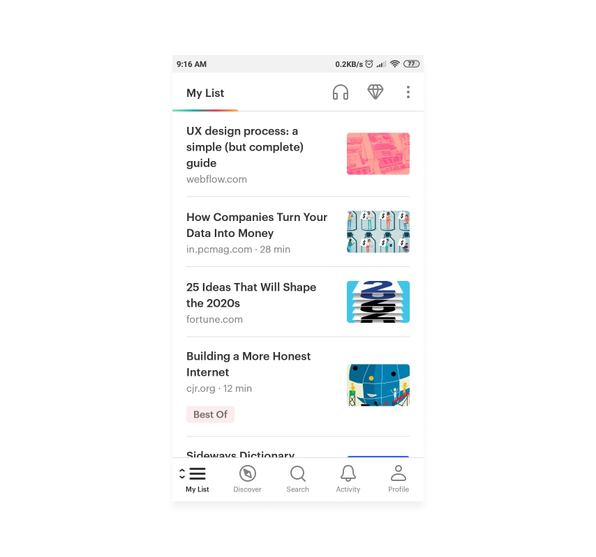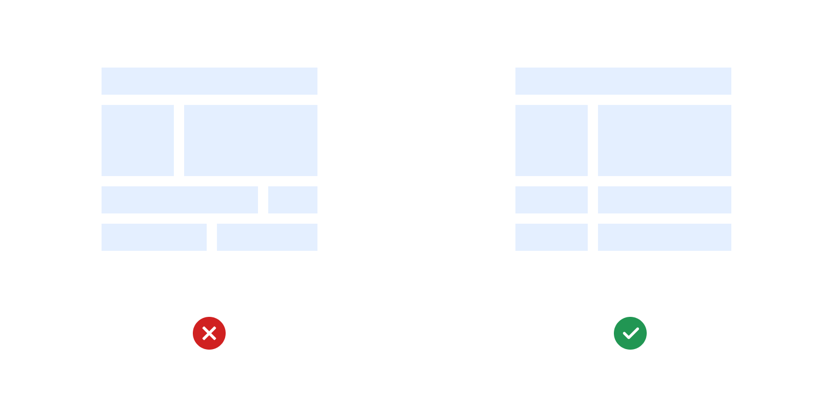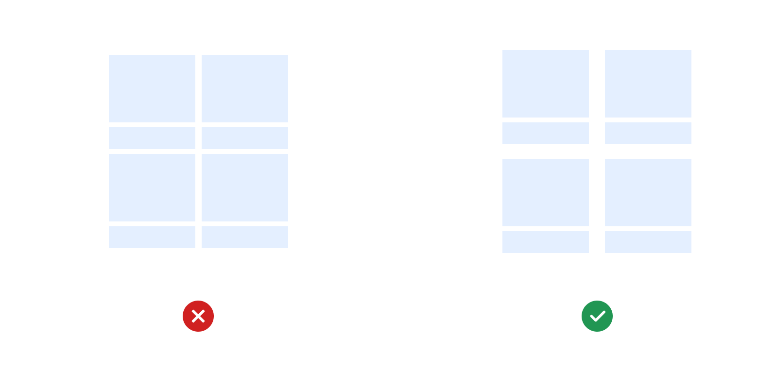 When building content discovery based applications or websites, always try to put the same content or group of content in one kind of rhythm so that information and actions become predictable to the users.
